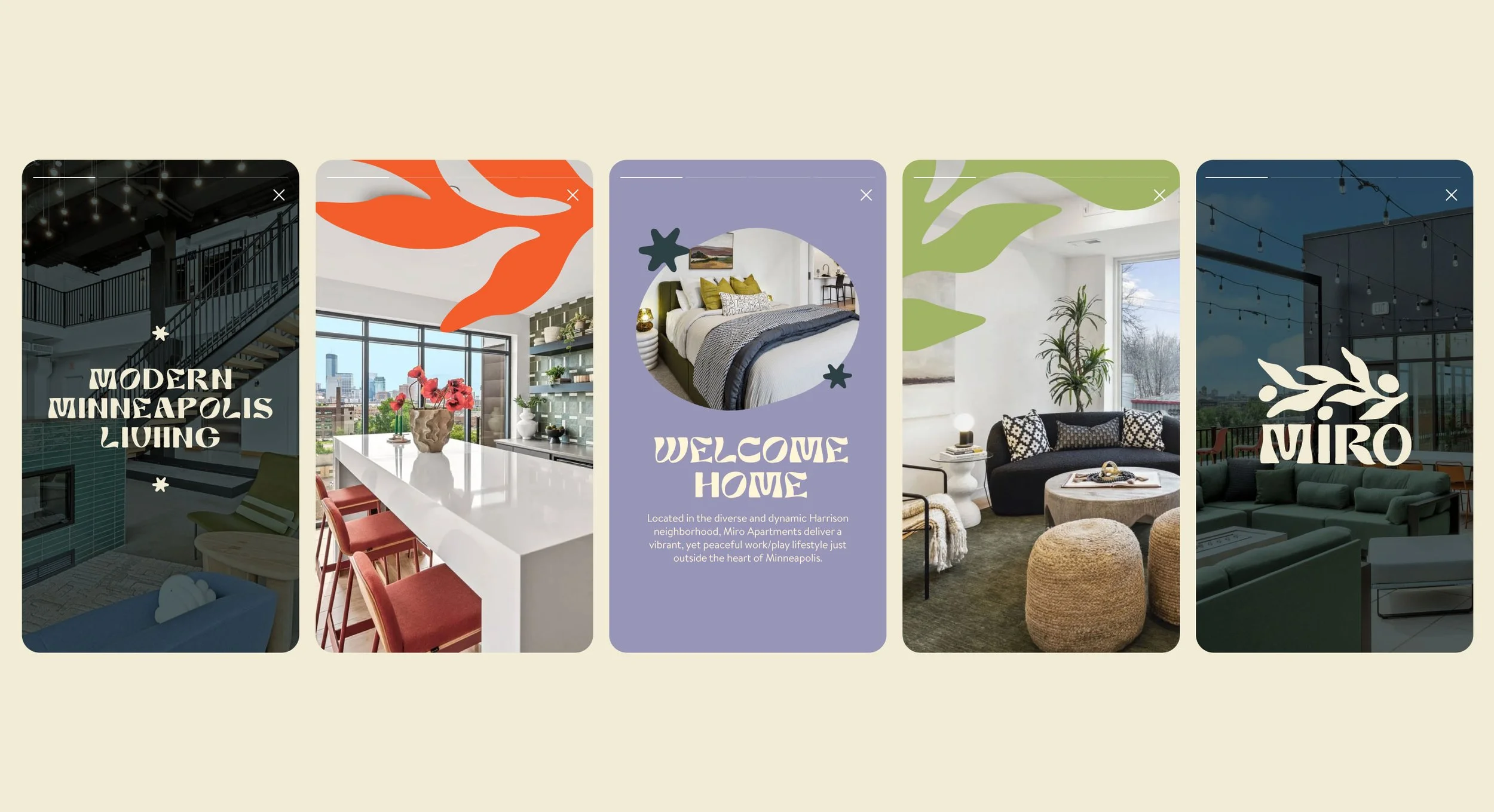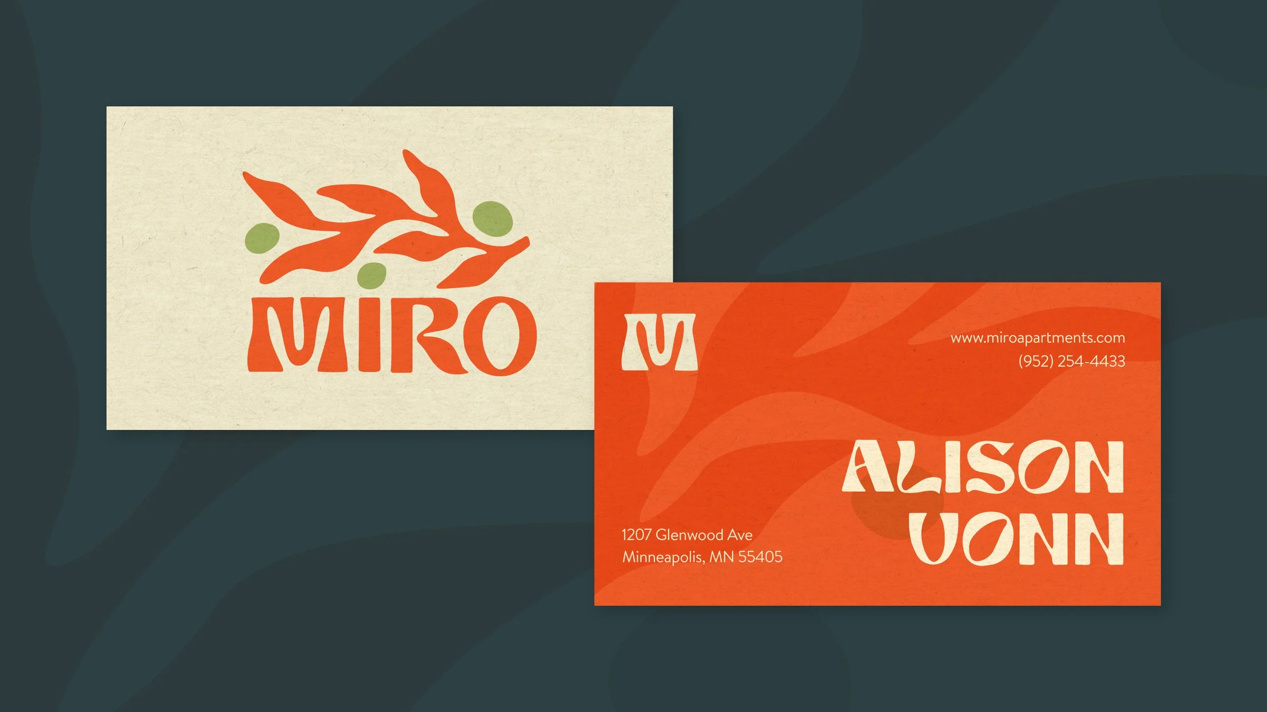 Our brand vision for Miro is rooted in the concept of peace, a direct nod to the building's name. This is why the olive branch graphic is so central to our visual identity—it's a clean, elegant symbol that's woven throughout all of our design materials. We've created a brand that feels both vibrant and serene, reflecting the unique balance of the Harrison neighborhood and its proximity to the heart of Minneapolis.
