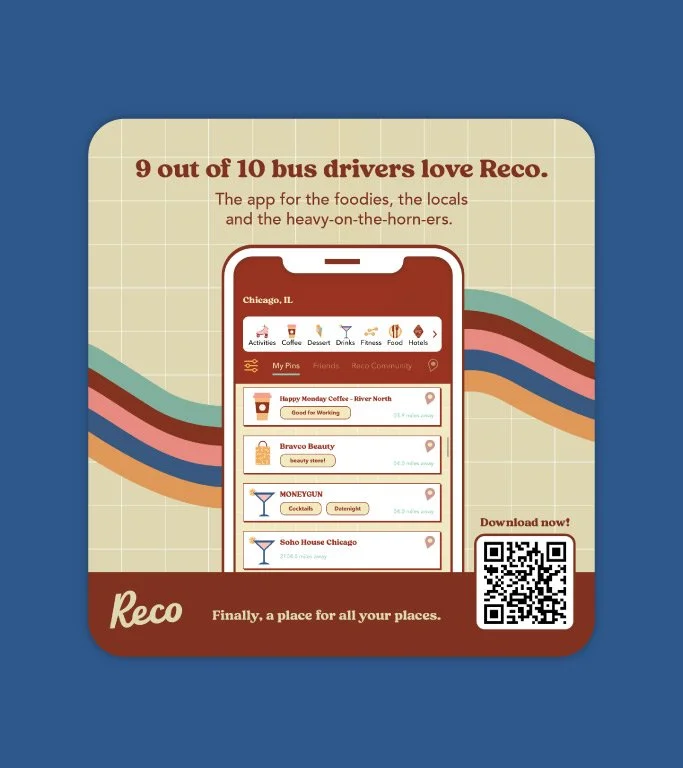 Meet Reco, the all-in-one destination for saving, sharing, and discovering places, wrapped in a fun, retro-inspired design that makes exploring feel exciting. With a vibrant interface, bold color-coding, and playful iconography, turn your personalized map into a visual delight. Reco lets you effortlessly save and track your favorite spots, create custom lists, and instantly share them with friends, all while connecting you to a global community sharing authentic local recommendations.